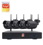 *4 pcs wifi bullet cameras *1 Piece Wifi NVR *1 Piece DC 12V 2A for NVR *4 pcs of DC 12V 1A for camera *Camera lens:3.6mm Fixed lens *Camera material: metal housing *H.265+/H.265/H.264+/H.264 Video Compression *Support motion detection *Support infrared night vision *Support IP67 waterproof *Support P2P,mobile an Internet view *Transmission distance: 100m *Support 3.5" hard disk(8TB Max) *1 LAN Network Interface *USB Backup: Support *Video Output:VGA/HDMI *Plug and play *Tuya Software