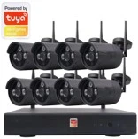 *8 pcs wifi bullet cameras *1 Piece Wifi NVR *1 Piece DC 12V 2A for NVR *8 pcs of DC 12V 1A for camera *Camera material: metal housing *Camera lens:3.6mm Fixed lens *H.265+/H.265/H.264+/H.264 Video Compression *Support motion detection *Support infrared night vision *Support IP67 waterproof *Support P2P,mobile an Internet view *Transmission distance: 100m *Support 3.5" hard disk(8TB Max) *1 LAN Network Interface *USB Backup: Support *Video Output:VGA/HDMI *Plug and play *Tuya Software