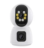 *Smart wifi Camera(Dual Lens) *Support 2.4 GHz WIFI *2MP+2MP resolution *Dual lens:3.6mm+3.6mm fixed lens *Support infrared & color night vision *Support motion detection/Motion tracking *Support two-way audio *355° horizontal+80° vertical rotation *Video compression : H.265 *Support TF Card(Max 128G )/Cloud storage *Power supply:DC 5V *Plastic housing *Tuya Software